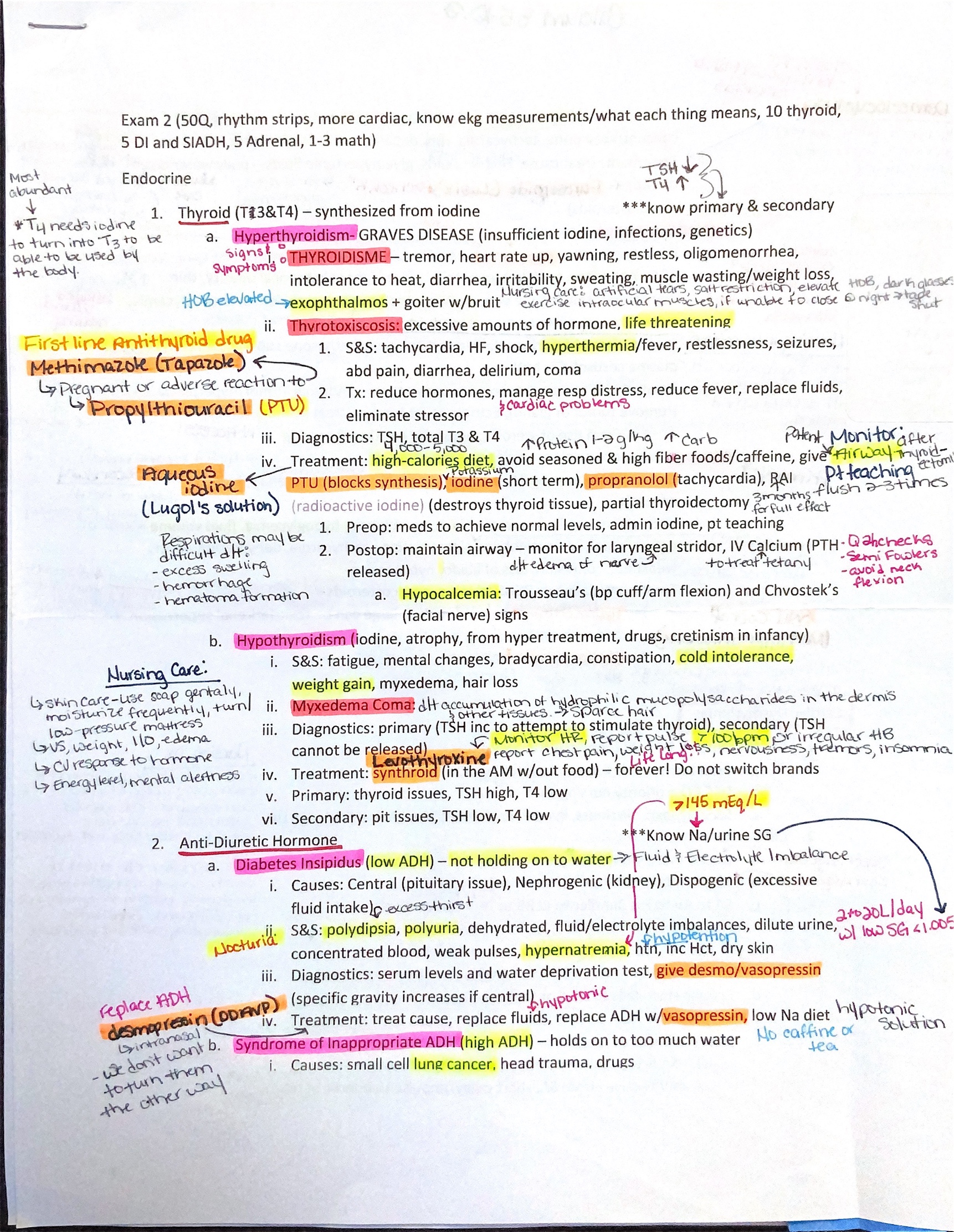 Exam Two Endocrine & Cardiovascular
