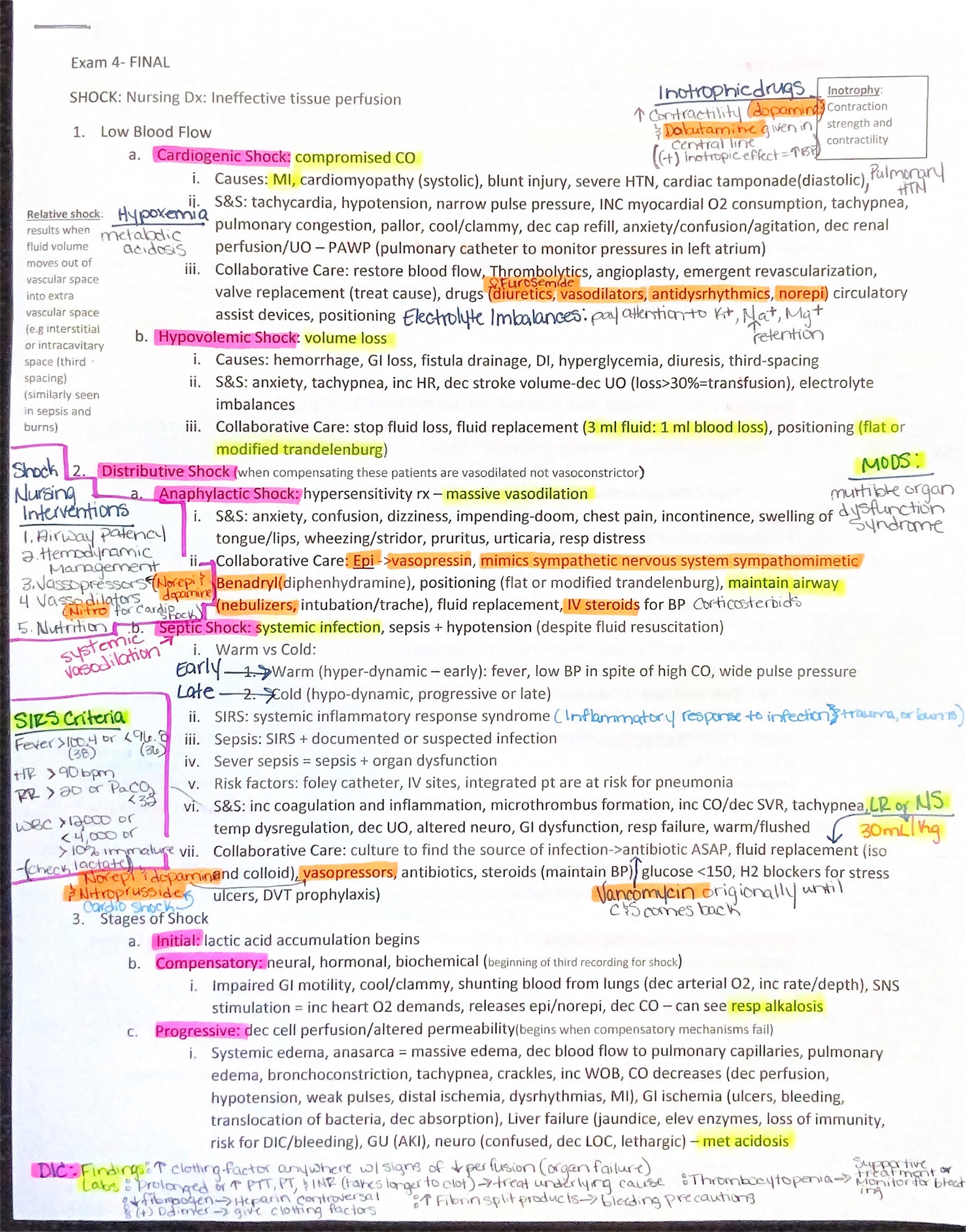 Exam 4 Shock & Burns