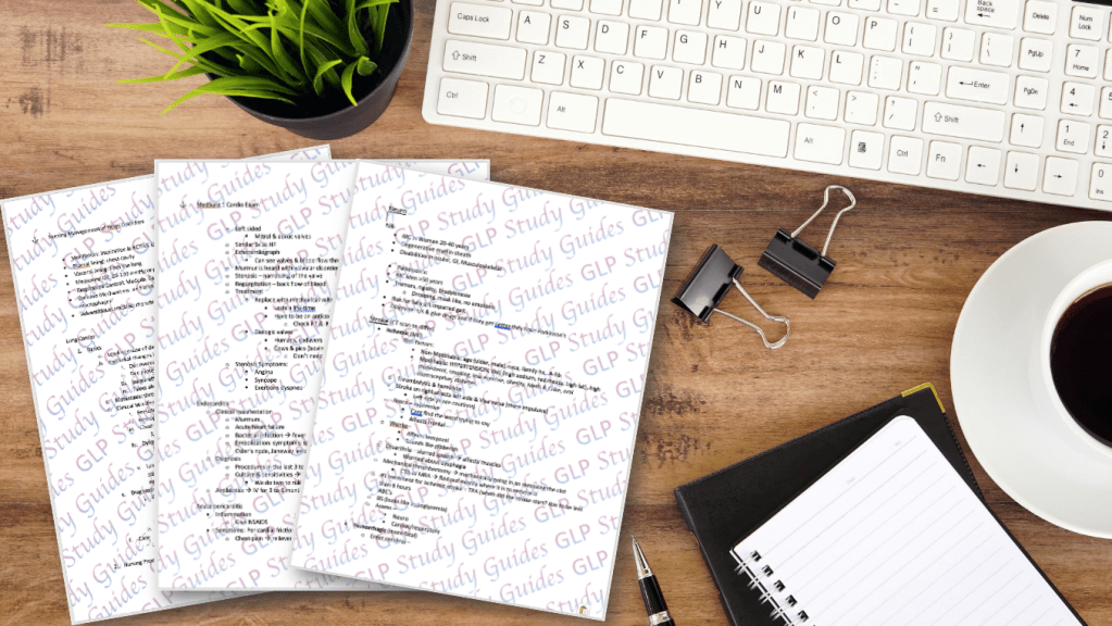 The study guides I’ve created are the same ones I used when taking my exams. Specifically, during both Medical Surgical (Management of the Older Adult) one and two courses.